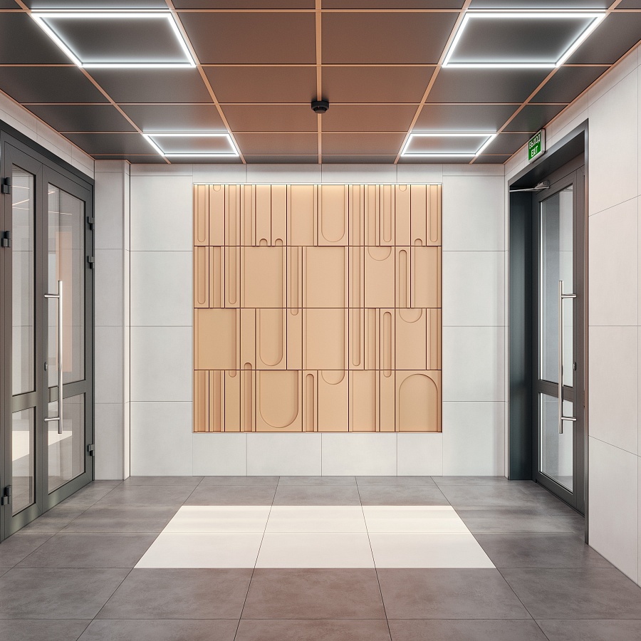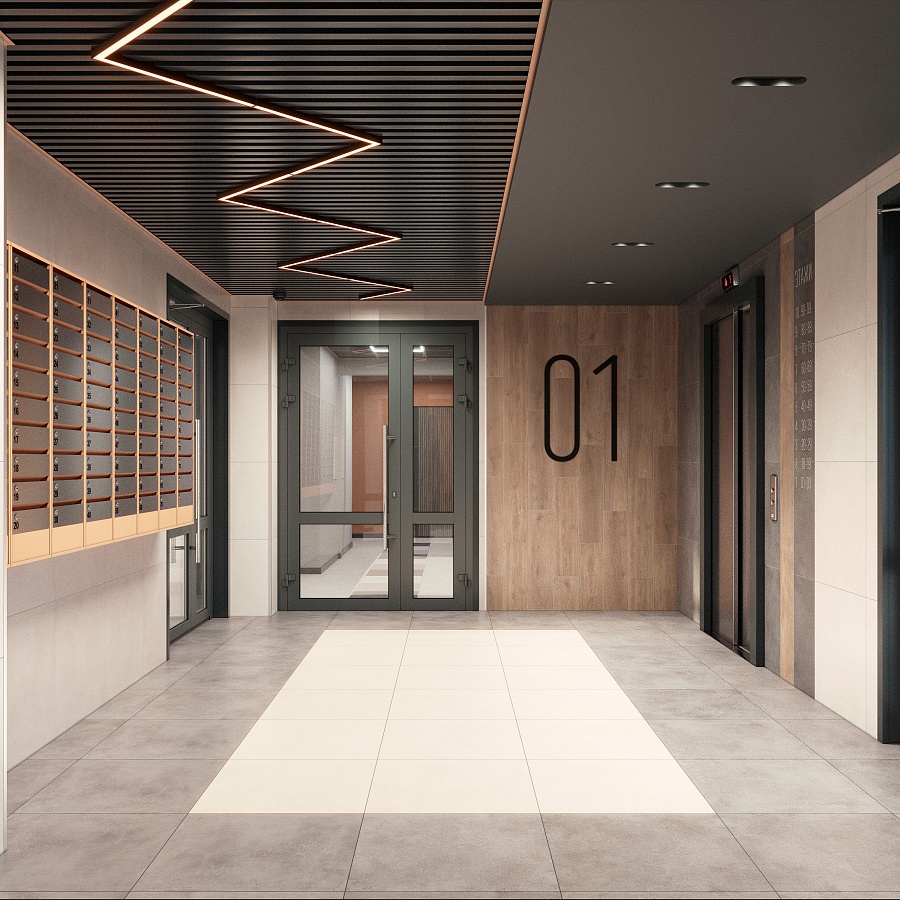 Дизайн-проект в природных оттенках с интерьерным освещением дополнит эстетику комплекса и создаст благоприятную атмосферу при возвращении домой. Подъезды в каждой блок-секции сквозные — для обеспечения безопасности пребывания во дворе и удобной разгрузки со стороны улиц. Помещения включают в себя места для консьержа или охраны, удобные колясочные. Установлены современные скоростные лифты, причем оборудование лифта расположено изолированно от жилых помещений для дополнительной шумоизоляции.